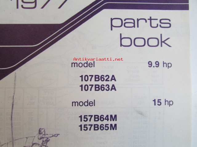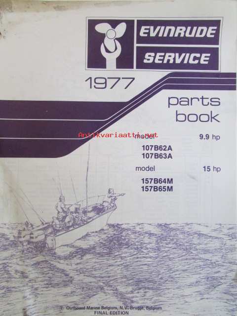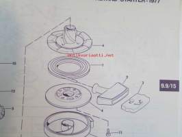 Evinrude Service 1977 Parts book 9.9 HP / 15 HP, katso tarkemmat mallimerkinnät kuvista.