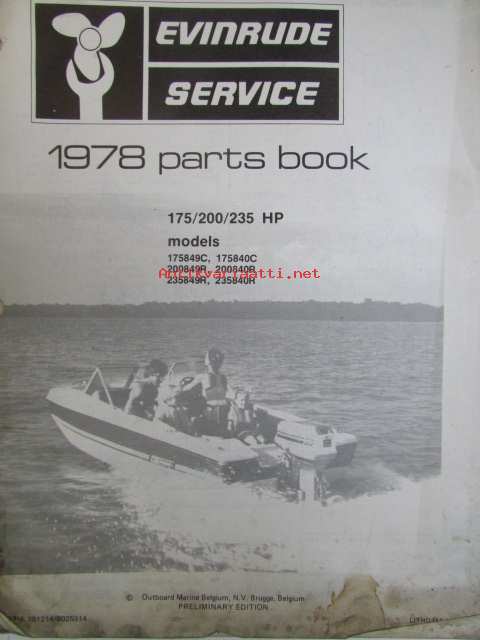 Evinrude Service 1978 Parts book 175/200/235 HP, katso tarkemmat mallimerkinnät kuvista.