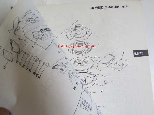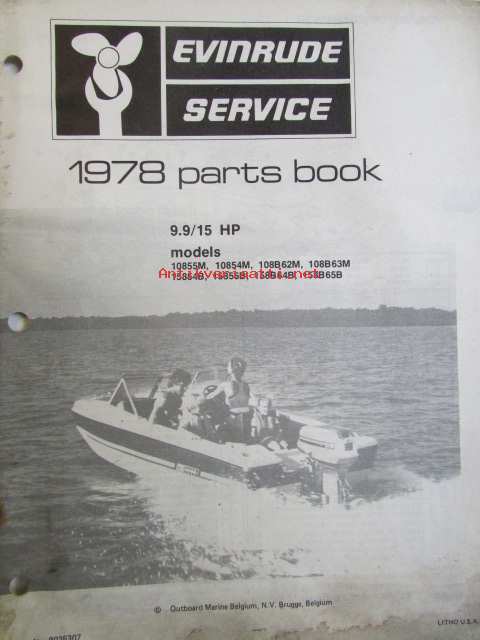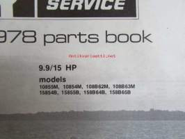 Evinrude Service 1978 Parts book 9.9/15 HP, katso tarkemmat mallimerkinnät kuvista.