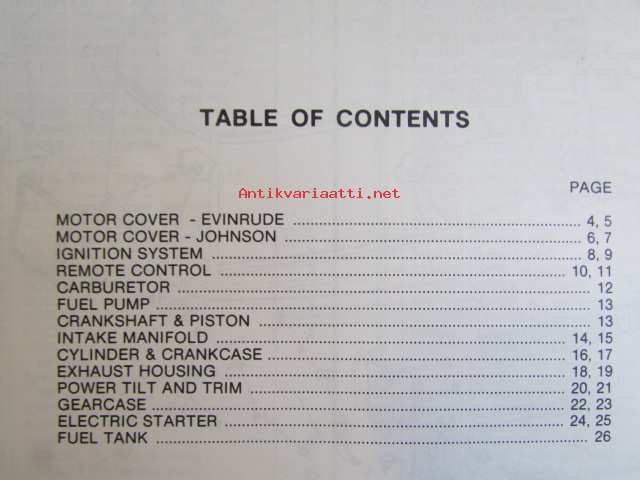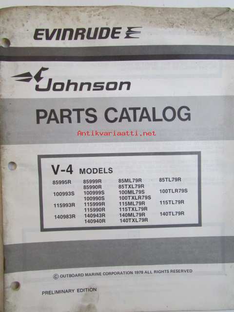 Evinrude-Johnson 1978 Parts Catalog V-4, katso tarkemmat mallimerkinnät kuvista.