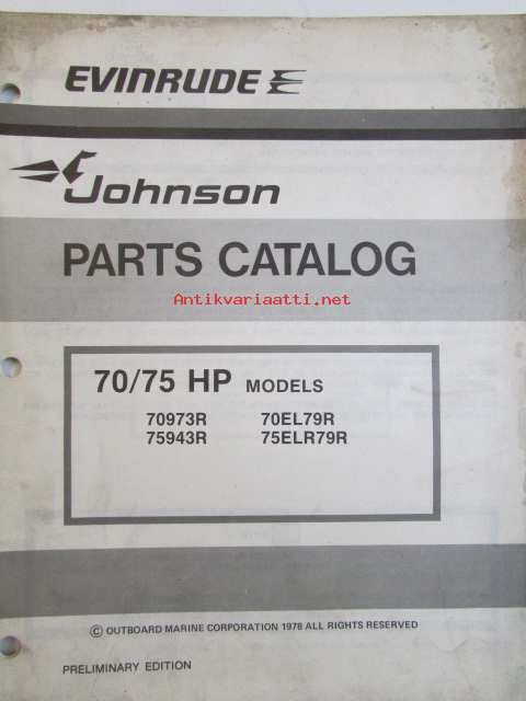 Evinrude-Johnson 1978 Parts Catalog 70/75 HP, katso tarkemmat mallimerkinnät kuvista.