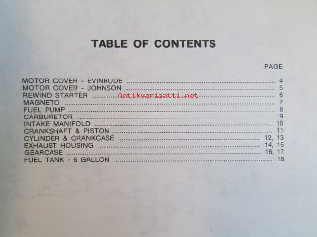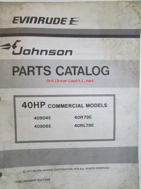 Evinrude-Johnson 1978 Parts Catalog 40 HP Commercial, katso tarkemmat mallimerkinnät kuvista.
