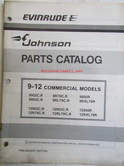 Evinrude-Johnson 1978 Parts Catalog 9-12 HP Commercial, katso tarkemmat mallimerkinnät kuvista.