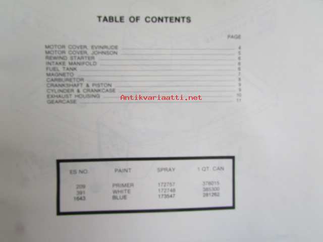Evinrude-Johnson 1978 Parts Catalog 6 HP Commercial, katso tarkemmat mallimerkinnät kuvista.