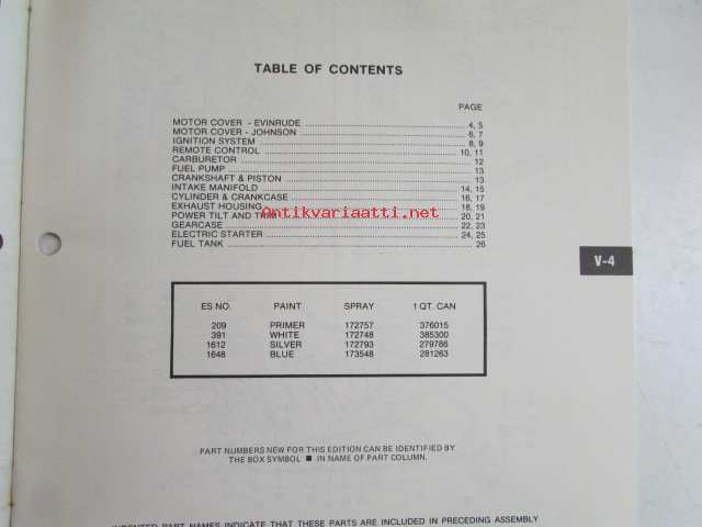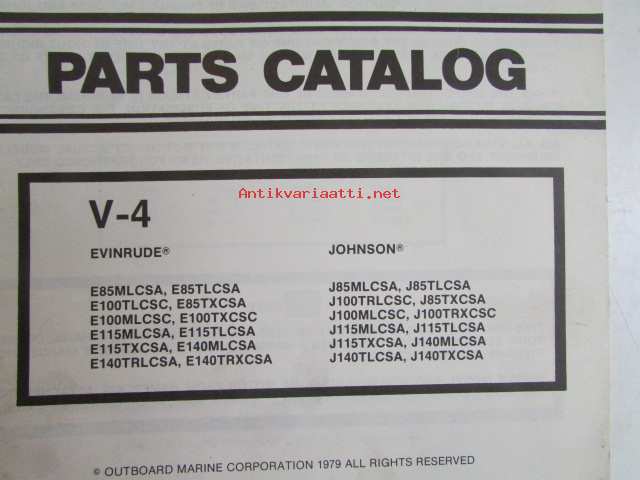 Evinrude-Johnson 1979 Parts Catalog V-4, katso tarkemmat mallimerkinnät kuvista.
