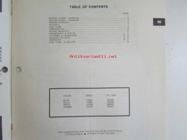 Evinrude-Johnson 1979 Parts Catalog 40 HP, katso tarkemmat mallimerkinnät kuvista.