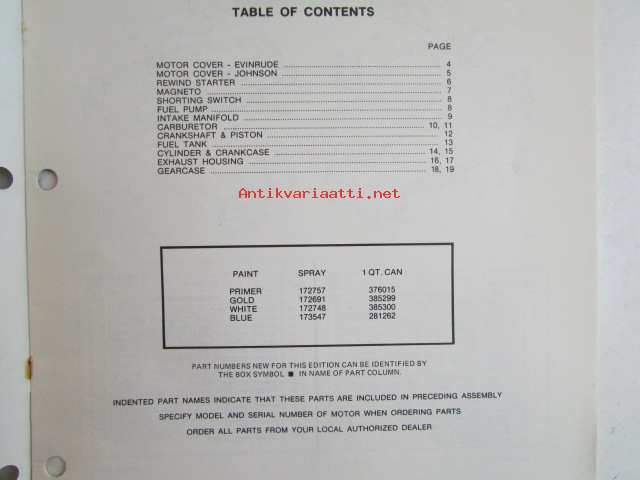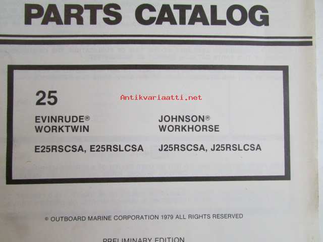 Evinrude-Johnson 1979 Parts Catalog 25 HP, katso tarkemmat mallimerkinnät kuvista.