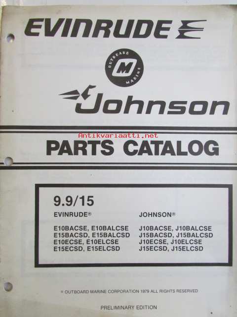 Evinrude-Johnson 1979 Parts Catalog 9.9/15 HP, katso tarkemmat mallimerkinnät kuvista.