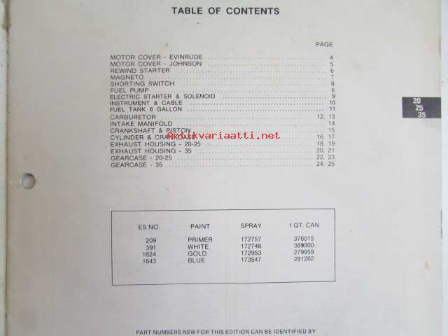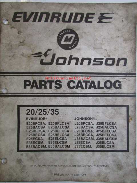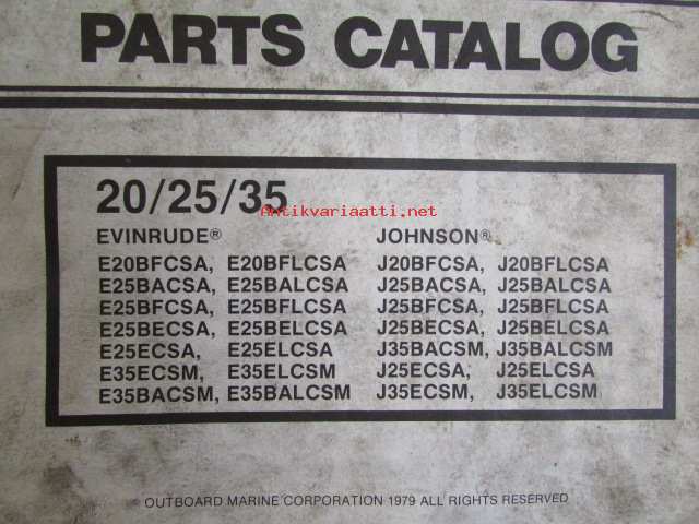 Evinrude-Johnson 1979 Parts Catalog 20/25/35 HP, katso tarkemmat mallimerkinnät kuvista.