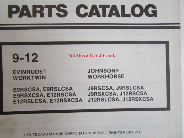 Evinrude-Johnson 1979 Parts Catalog 9-12 HP, katso tarkemmat mallimerkinnät kuvista.