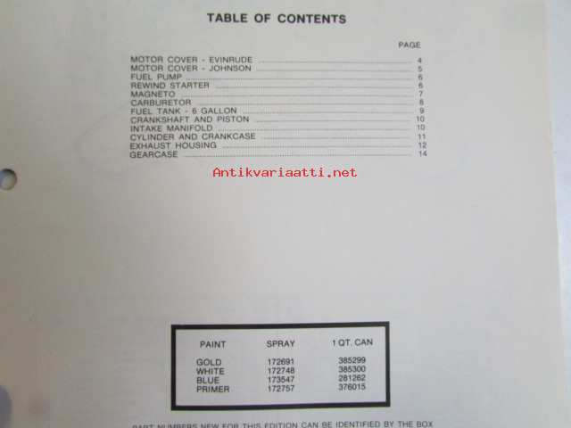 Evinrude-Johnson 1979 Parts Catalog 6 HP, katso tarkemmat mallimerkinnät kuvista.
