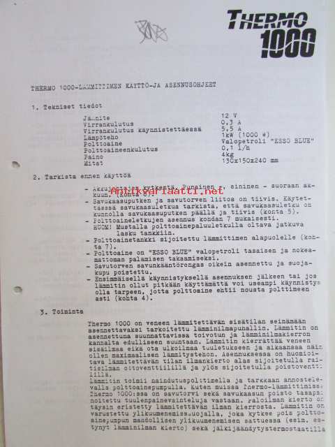 Thremo 1000 Veneen sisätilaan asennettava lämminilmapuhallin - Käyttö- ja asennusohjeet
