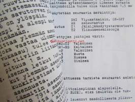 | Saatavilla | 1 kpl | | Sivuja | 7 | | Kunto | K3 | | Maahantuoja/Jälleenmyyjäm kopioimia, kansio reijitykset valmiina | | Sidonta/painoasu | Muu | | Kielet | Suomi |
