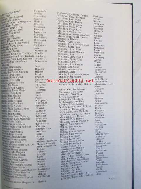 | Saatavilla | 1 kpl | | Julkaisuvuosi | 1985 | | Sivuja | 532 | | Painos | 1. | | Kunto | K2 | | Sidonta/painoasu | Sidottu (kovak.) | | ISBN | 951-9401-49-0 | | Kielet | Suomi |