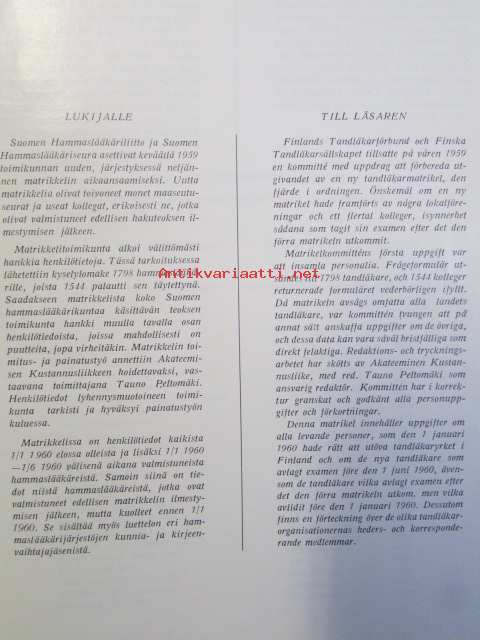 Suomen hammaslääkärit / Finlands tandläkare 1960