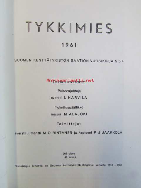 Tykkimies 1961. Suomen kenttätykistön säätiön vuosikirja N:o 4