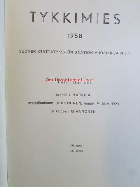 Tykkimies 1958. Suomen kenttätykistön säätiön vuosikirja N:o 1