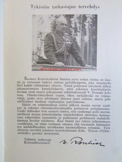 Suomen kenttätykistön säätiö, 195815 x 21 cm.