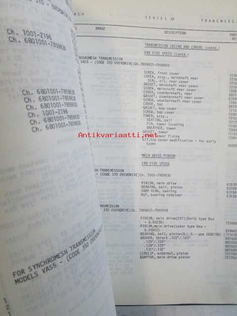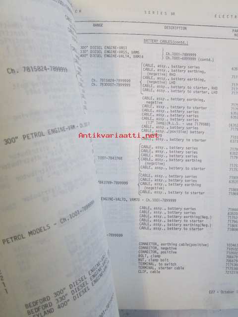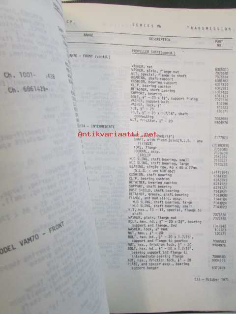 Vauxhall Bedford ( VA PS-307 ) Parts Catalogue Series P, T, W, (VA) Coach Chassis 1971 - Varaosakirja, katso kuvista tarkemmin mallitiedot ja sisäälys.