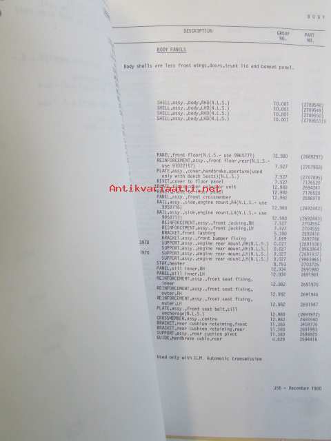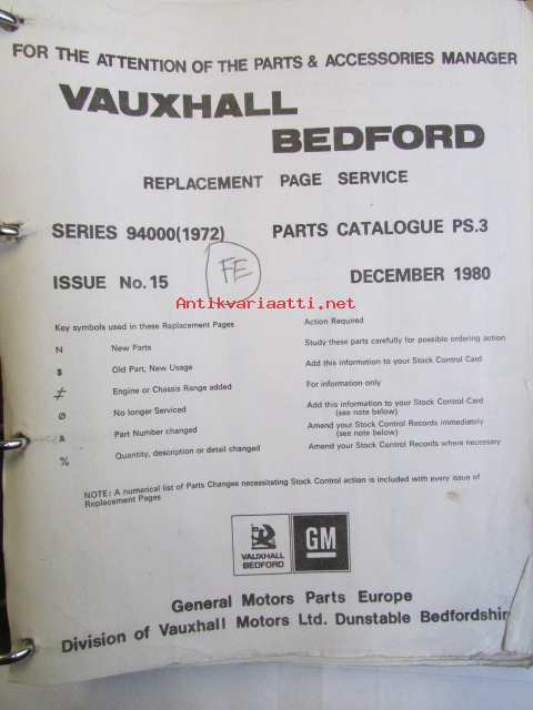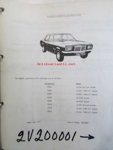 Vauxhall Bedford Parts Catalogue 2V200001 (FE), Model Viktor, VX, Ventora 1972 - Varaosakirja, katso kuvista tarkemmin mallitiedot ja sisäälys.