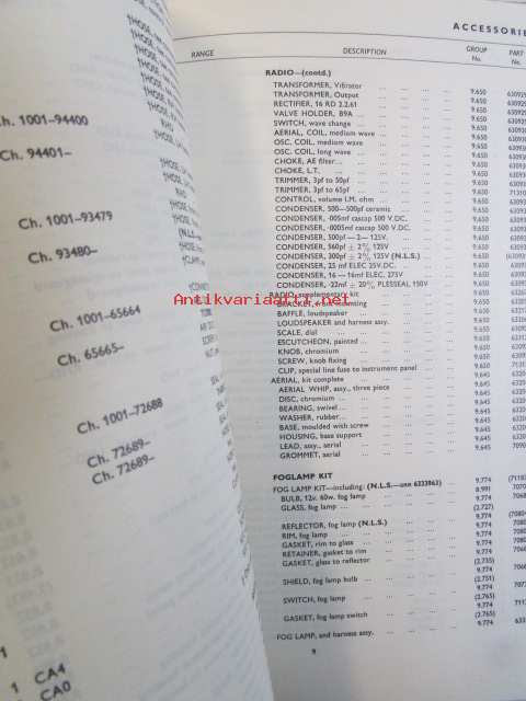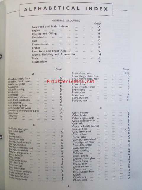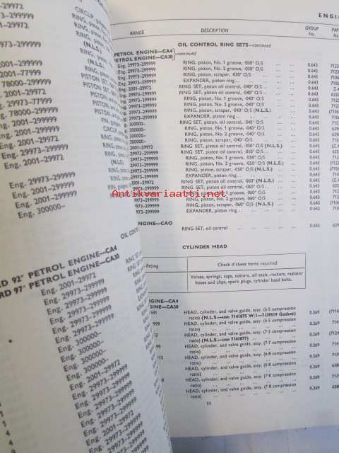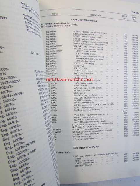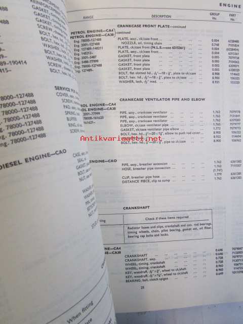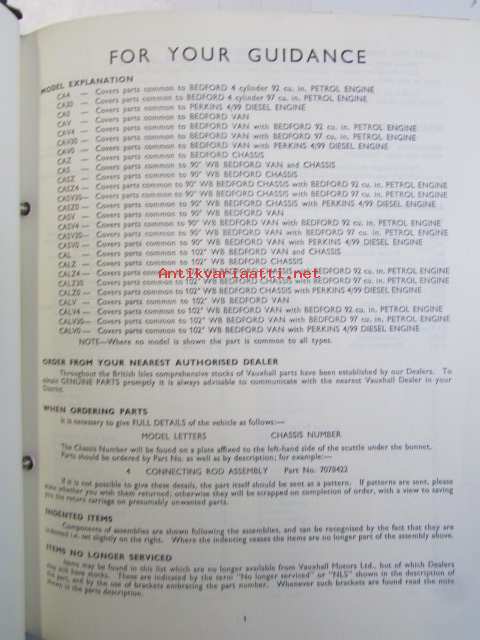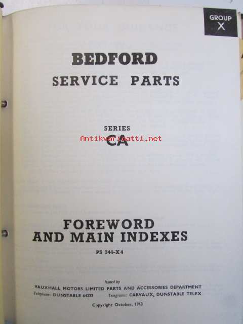 Bedford Service Parts Series CA model (PS. 344 ) 1961-63 - Varaosakirja, katso kuvista tarkemmin mallitiedot ja sisäälys.