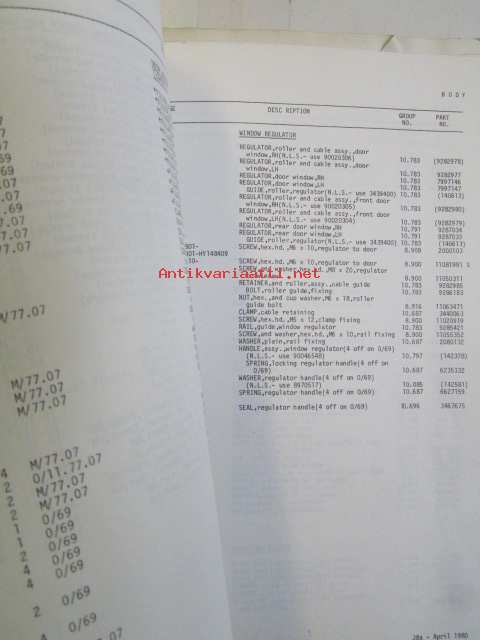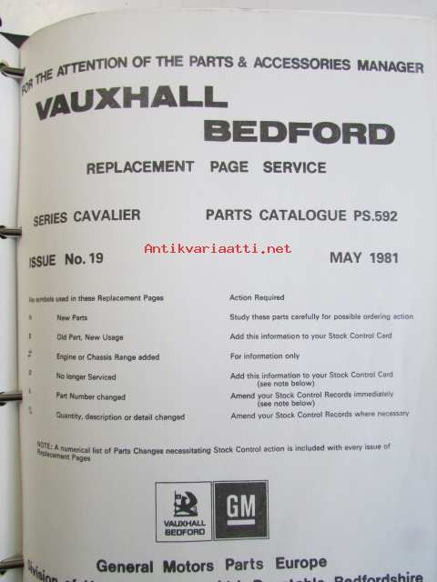 Vauxhall Bedford Parts Catalogue Cavalier Series 1975-82 (PS. 592 ) - Varaosakirja, katso kuvista tarkemmin mallitiedot ja sisäälys.