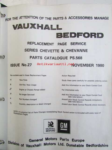 Vauxhall Bedford Parts Catalogue Chevette Series 197-80 ( PS. 568 ) - Varaosakirja, katso kuvista tarkemmin mallitiedot ja sisäälys.