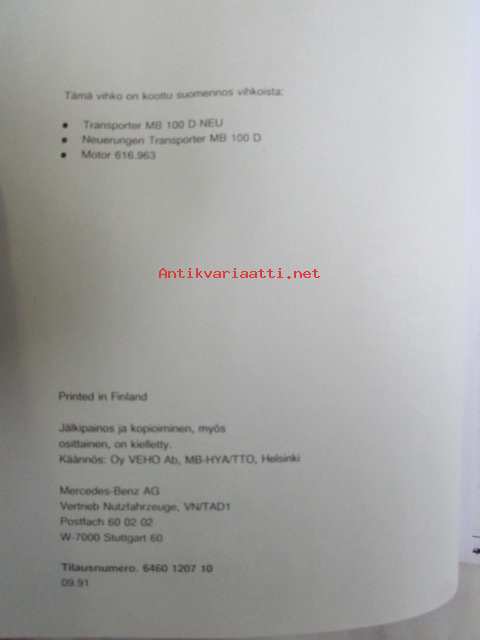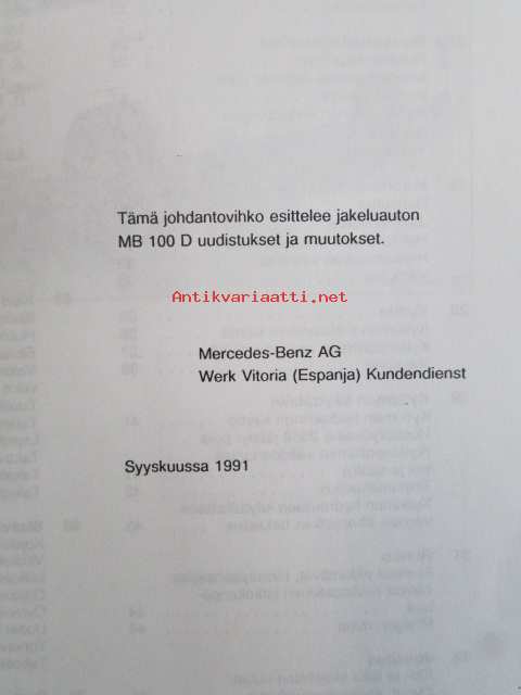 Mercedes-Benz Jakeluauto MB 100 D uudistukset ja muutokset, Johdantovihko - Katso kuvista tarkemmin mallityypit ja sisällys