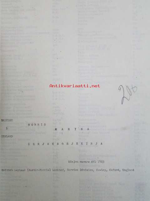 British Leyland Morris Marina ( AKD 7803 ) - Korjausohjekirja, Katso kuvista tarkemmat mallitmerkinnät ja sisällys
