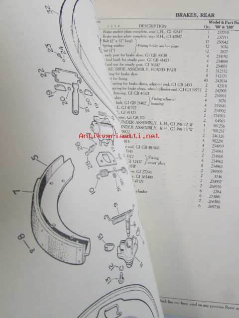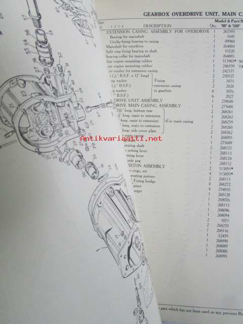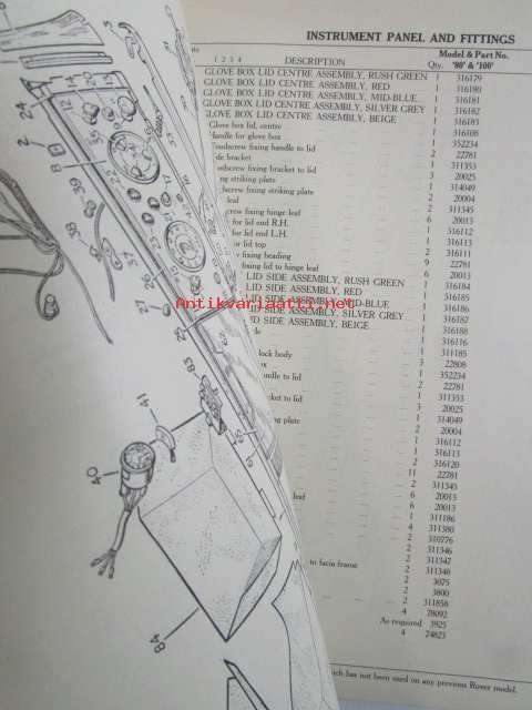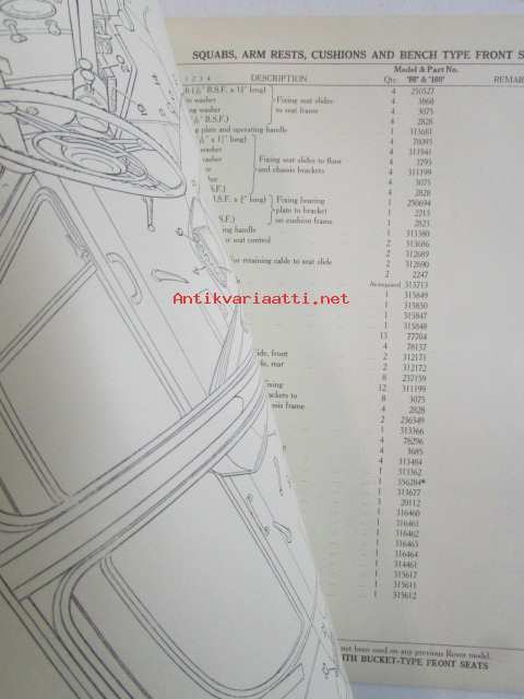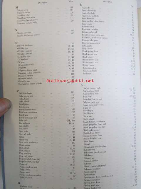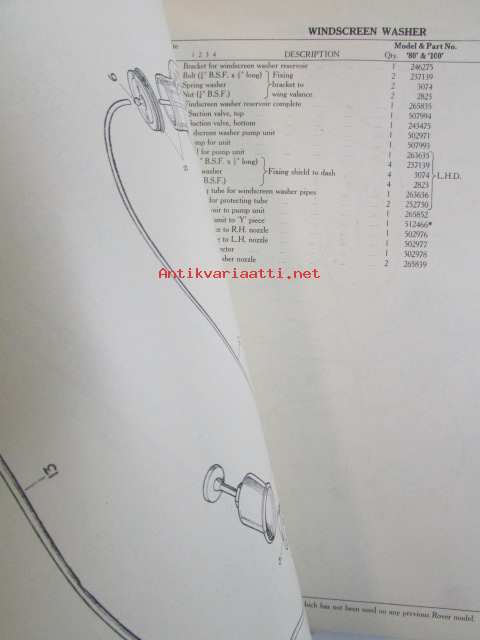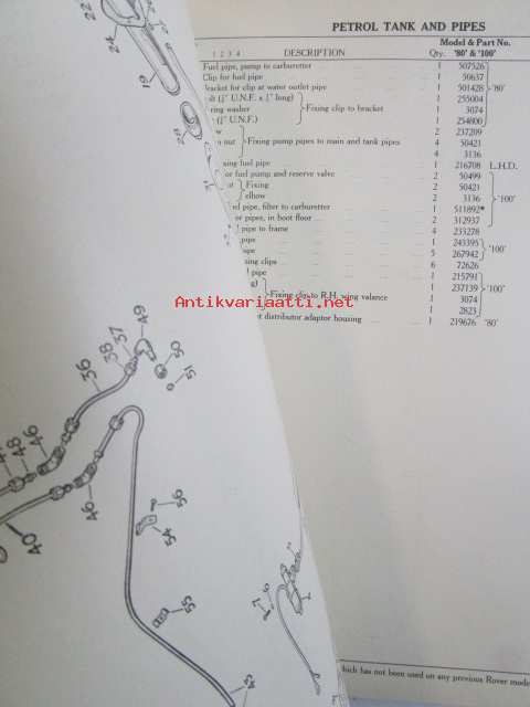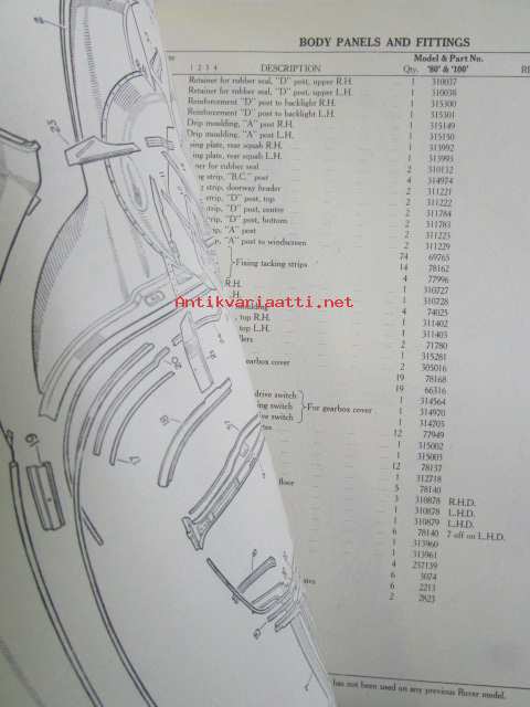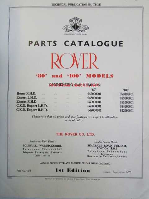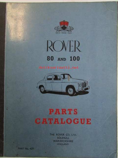 Rover 80 and 100 Parts Catalogue ( part no 4271 ) 1959 - Varaosakirja, Katso kuvista tarkemmat mallitmerkinnät ja sisällys