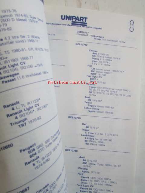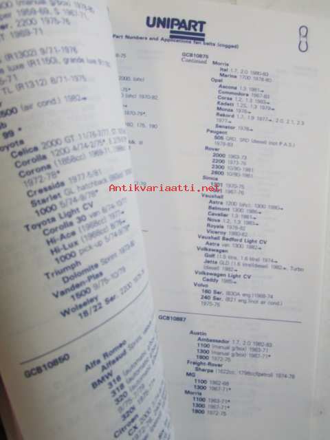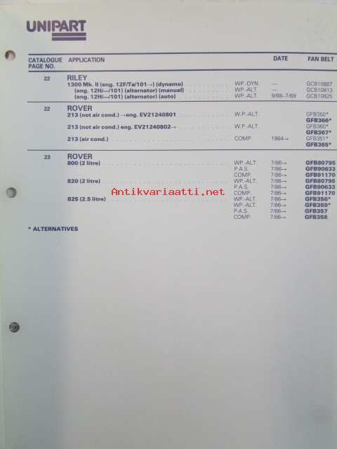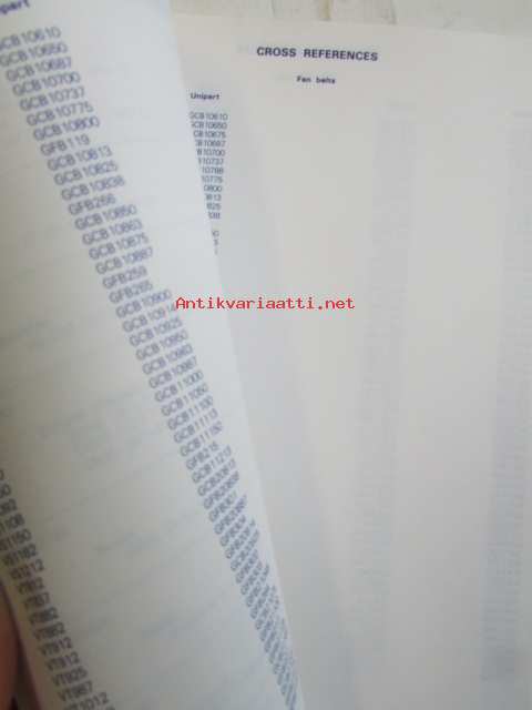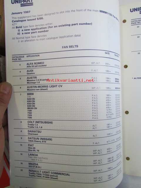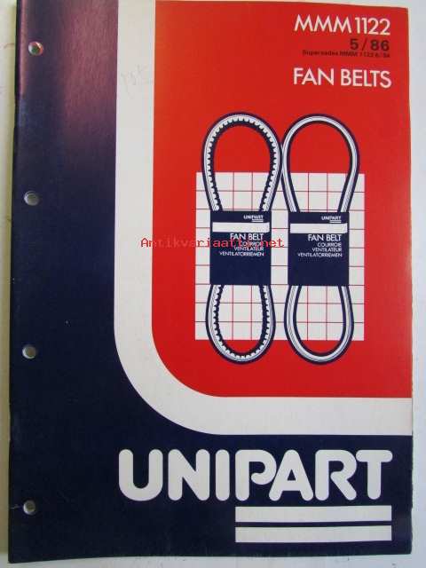Unipart MMM 1122, Fan belts - Jarruhihnojen varaosaluettelo, katso kuvista sisällys tarkemmin.