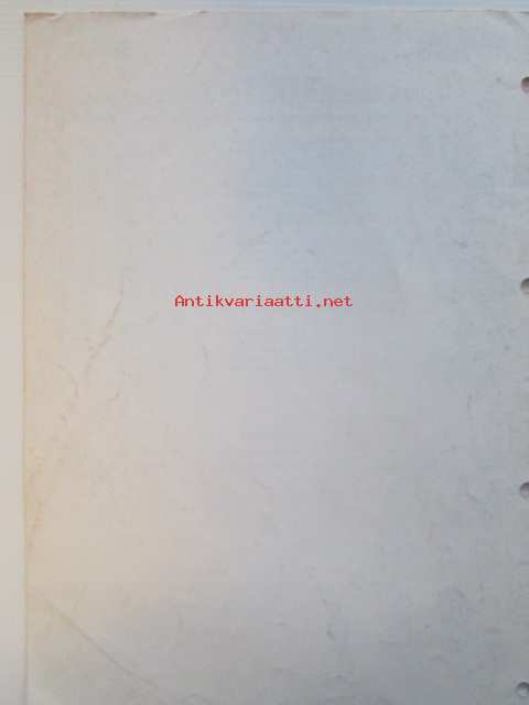 | Saatavilla | 1 kpl | | Julkaisuvuosi | 1986 | | Sivuja | 5 | | Kunto | K2 | | Sidonta/painoasu | Nidottu (pehmeäk.) | | Kielet | Englanti |