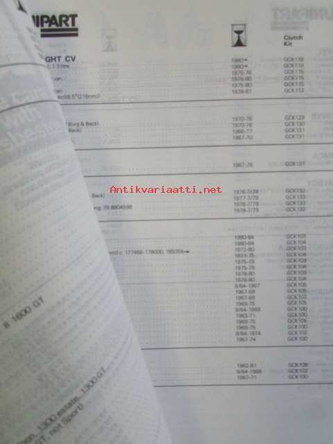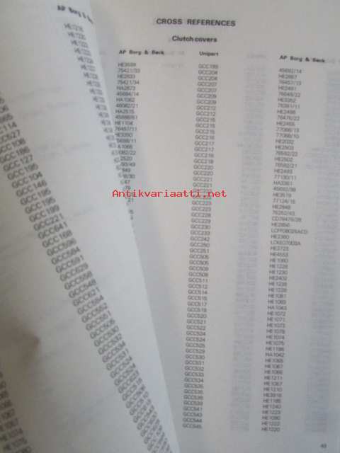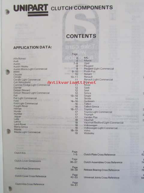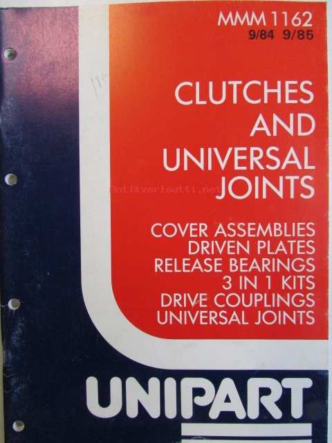Uniparts, 1985Unipart MMM 1162 - Clutches and Universal Joints (Cover Asemmblies, Driven Plates, Release Bearings, 3 in 1 Kits, Drive Couplings, Universal joints - Tarvikkeiden Varaosaluettelo, katso kuvista sisällys tarkemmin.