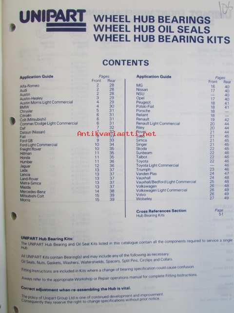 Unipart MMM 1170, Hub Bearing Kits, Hub Bearings, Hub Oil Seals - Tarvikkeiden Varaosaluettelo, katso kuvista sisällys tarkemmin.
