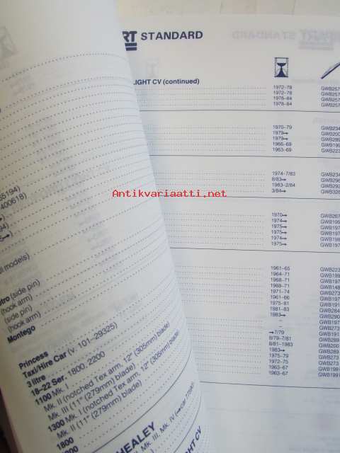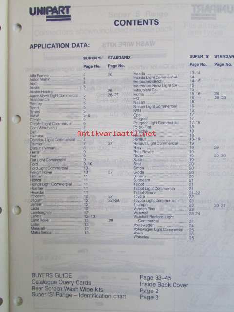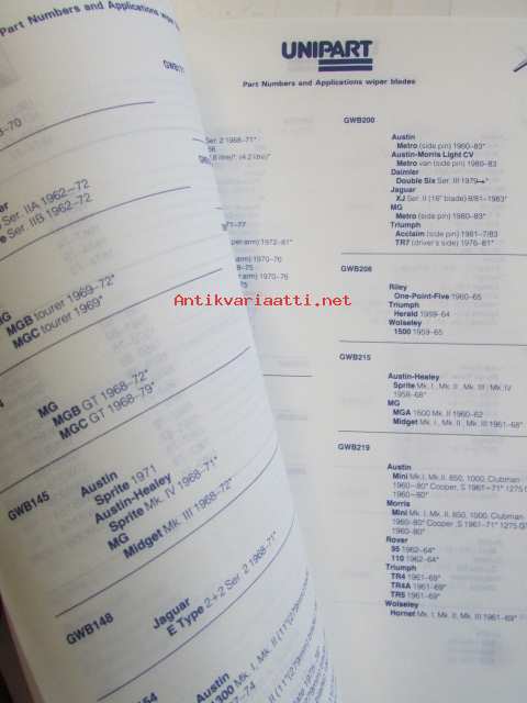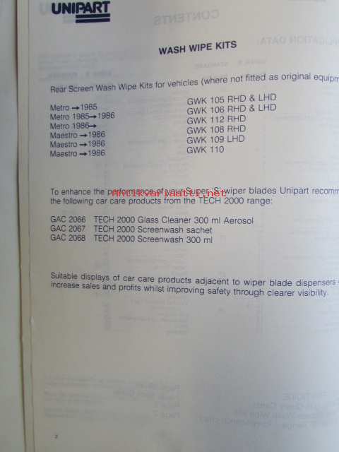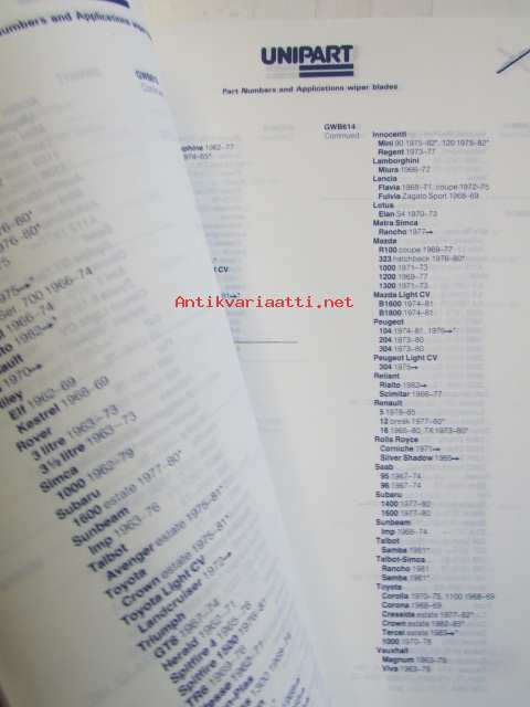 Unipart MMM 1172, Wiper Blades - Pyyhinsulkien Varaosaluettelo, katso kuvista sisällys tarkemmin.