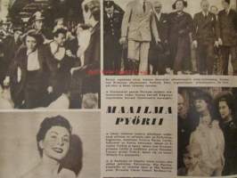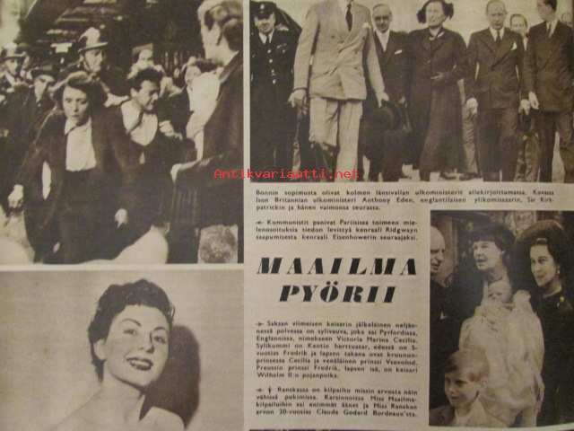 Suomen Kuvalehti 1952 nr 23 -mm. Maailma pyörii Gina Lollobrigida Kio Yamauchi Viktor Sjöström Anthony Eden, Isotkin miehet nypläävät Raumalla, Oliko maailman