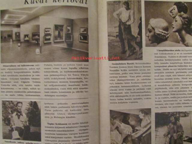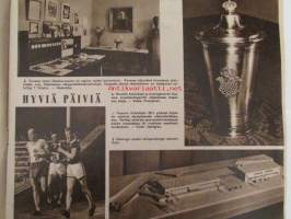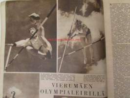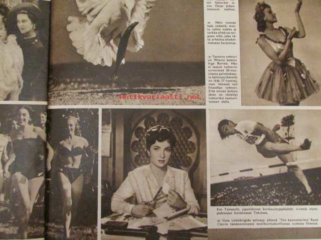 Suomen Kuvalehti 1952 nr 23 -mm. Maailma pyörii Gina Lollobrigida Kio Yamauchi Viktor Sjöström Anthony Eden, Isotkin miehet nypläävät Raumalla, Oliko maailman vanhimman verkon kutoja vasenkätinen, Herraskartano Lohjan Kirkniemi Marsalkat viideltä vuosisadalta, Vierumäen Olympialeirillä Erkki Kauppila Urpo Vähäranta Elis Landström Heikki Tamminen, Sibelius-museo Turussa.25 x 32 cm.