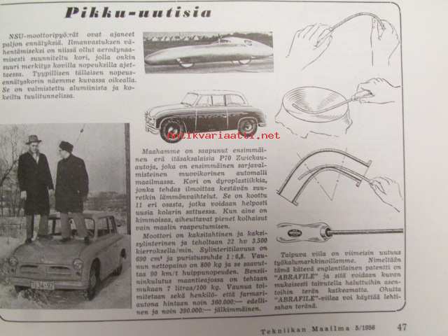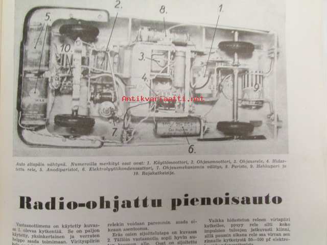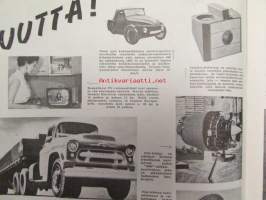 Tekniikan Maailma 1956 nr 5 -mm. Radio-ohjattu pienoisauto, Yksinkertainen ja pienikokoinen matkaradio (kaaviot, kytkennät, kelat, osien sijoittelu, viritys,