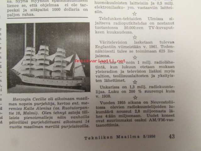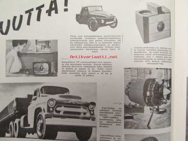 Tekniikan Maailma 1956 nr 5 -mm. Radio-ohjattu pienoisauto, Yksinkertainen ja pienikokoinen matkaradio (kaaviot, kytkennät, kelat, osien sijoittelu, viritys, osaluettelo), Koekuvassa Mamiyaflex automatic-B, Sateliittisuunnitelmia, Atomivoimala, Tarkastele kuvista tarkemmin sisältöä.21 x 29 cm.