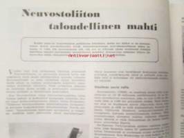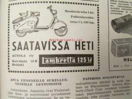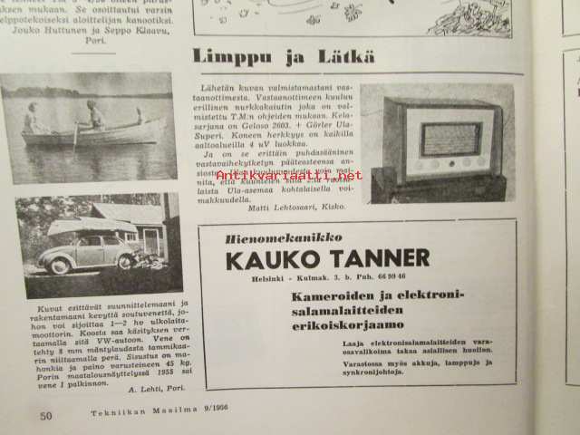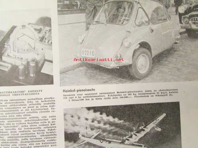Tekniikan Maailma 1956 nr 9 -mm. Putkentaivutuslaite kupariputkelle, Adox 300 mielenkiintoinen kamerauutuus, Transistorikatsaus, Pohjois-Amerikan arktinen suojavyö, Jawa-CZ 175-CZ 175 Tsekkoslovakialainen moottoripyöräuutuus, Voigländer Prominent kamera, Austin Henley 100, Uutta France valtamerilaiva, Nardi FN 333, Heinkel pienoisauto, Atomilentokone Corvair NB-36, John Cobb vauhdin kuningas, Tarkastele kuvista tarkemmin sisältöä.21 x 29 cm.
