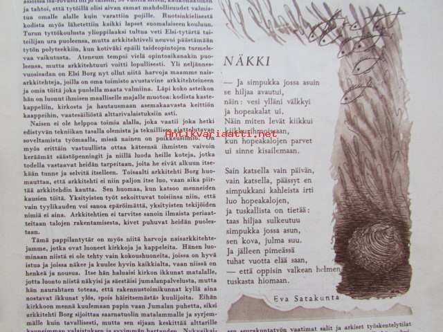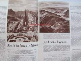 Kotiliesi 1953 nr 19 -mm. Suoria sanoja pesemisestä, Pois jyrsijät puutarhasta, Peruspuku uusi seitsemän kertaa viikossa, Uuden varjostimen hetki, Kotitalous elämän palveluksessa, Rehtori Antero Rautavaara Kotilieden työnjohto-opisto II, Tunnettuja Naisia Arkkitehti Elsi Borg, Tarkastele kuvista tarkemmin sisältöä.