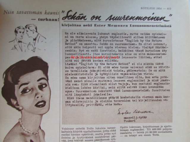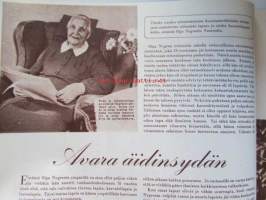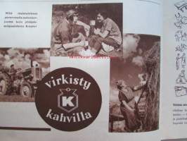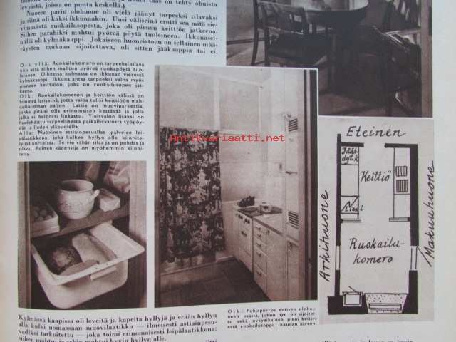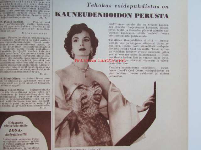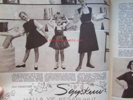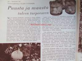 Kotiliesi 1954 nr 17 -mm. Puusta maasta talven tarpeeseen, Tohtori Toivo Rautavaara tiede säilönnän apuna, Kannot kangitta pihasta, Silakkapihvejä paistamalla