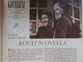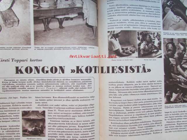 Kotiliesi 1954 nr 17 -mm. Puusta maasta talven tarpeeseen, Tohtori Toivo Rautavaara tiede säilönnän apuna, Kannot kangitta pihasta, Silakkapihvejä paistamalla ja pariloimalla, Syyskuu Halla vie kesäpuvut, Meiltä puuttuu hyvän käytöksen koulu, Kirsti Toppari ,kertoo Kongon kotiliesistä, Mieheni ei rakasta minua, Äidin avara sydän, Fil. tohtori Koulun ovella, Tarkastele kuvista tarkemmin sisältöä.21 x 29 cm.