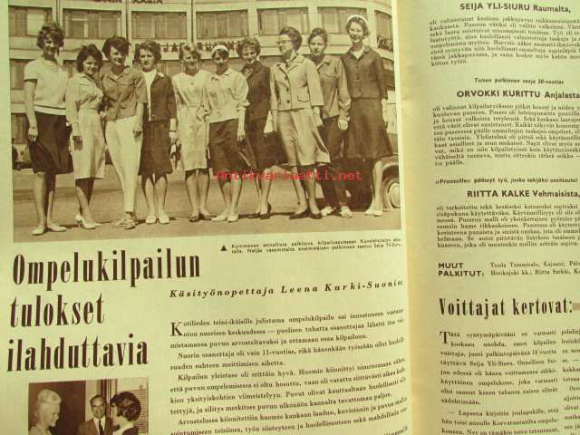 Kotiliesi 1962 nr 15 -mm. Ompelemme ja kirjoimme, Mansikkamaa sadon jälkeen, Raili Manninen Sadon korjuun aikaan, Kesämökin valaisimet paranevat, Suomalainen