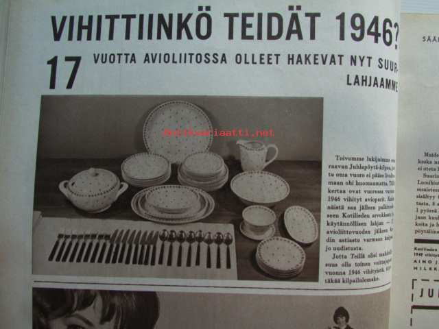 Kotiliesi 1963 nr 16 - elokuu mm. Ammattikoulut ovat avoinna nyt myös naisille, Reino Huttunen Uskallanko mennä avioliittoon, Rakensimme harkiten talon, Puutarhaihmiset, Raili Manninen elokuun annoksia, Solakan muodin ongelmat, nyt säilömme C-vitamiiniä, Paula- tyttö Pauligin mainoksessa. Tarkastele kuvista tarkemmin sisältöä.