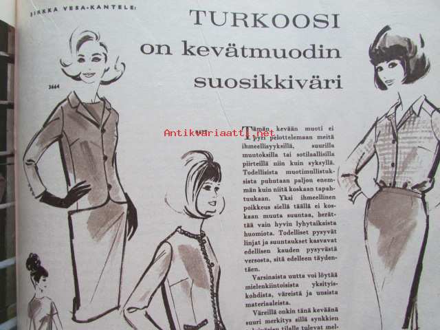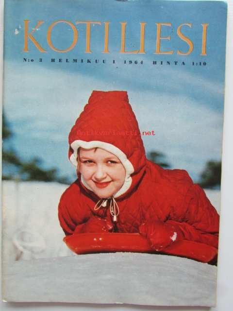 Kotiliesi 1964 nr 3 -mm. Oikotietä ammattiin, Kolmen polven perheasuntoViihdymme vanhojen esineiden parissa, Puhtauden paino, Katkeruus tuli sydämmestä, Made on keskitalven kala, Turkoosi on kevätmuodin suosikkiväri, Hito auttaa sokeritaudissakin, Tarkastele kuvista tarkemmin sisältöä.21 x 29 cm.
