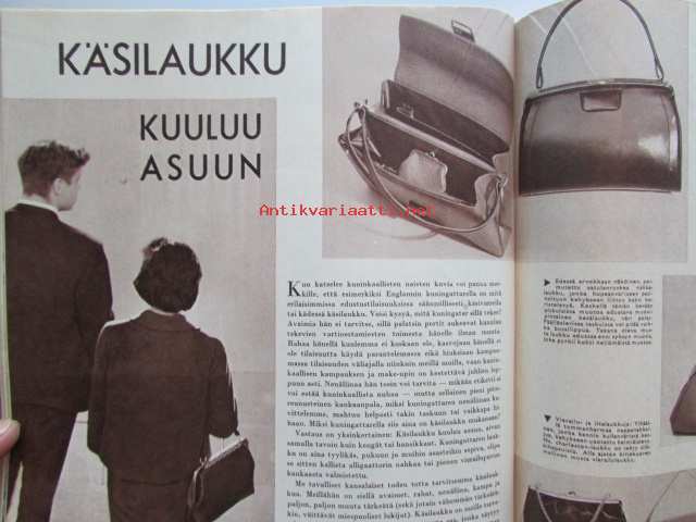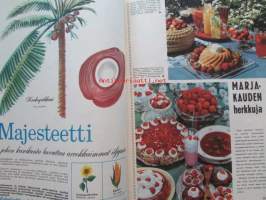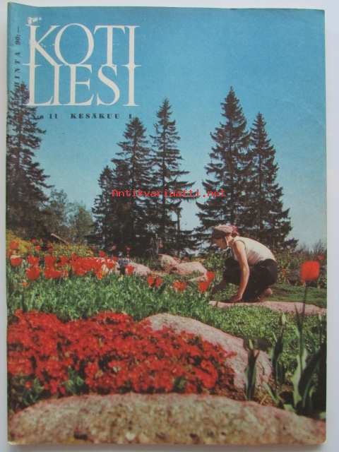 Kotiliesi 1962 nr 11 -mm. Riika Romppasen pukukangas, Voiko oppia rakastamaan, Milloin talo isältä pojalle, Äänettömyyteen suojapuku, Marjakauden herkkuja, Kevyttä kesäruokaa kesän juhliin, Kylvämme kaksivuotisia kukkia, Käsilaukku kuuluu asuun, Tarkastele kuvista tarkemmin sisältöä.