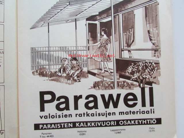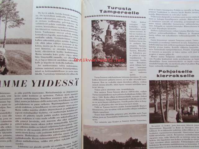 Yhtyneet Kuvalehdet Oy, 1962Kotiliesi 1962 nr 13 -mm. Huonekasvien kastelu loma-aikana, Miehen Mestaruushillo, Heinäpellon pienmantereella, Jasmiini kukkii, Matkustamme yhdessä, Tillikatrilli, Rantaan mukautuva huuhtelulaitturi, Meillä ainakin säilötään, Leivottaisiinko ulkona, Tarkastele kuvista tarkemmin sisältöä.21 x 29 cm.