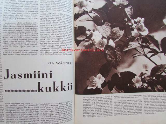 Kotiliesi 1962 nr 13 -mm. Huonekasvien kastelu loma-aikana, Miehen Mestaruushillo, Heinäpellon pienmantereella, Jasmiini kukkii, Matkustamme yhdessä,