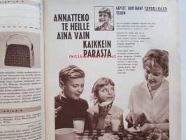 Kotiliesi 1961 nr 4 -mm. Kansanterveystyö vetonumeroksi Suomen naisjärjestöjen ohjelmaan, Kasvava perhe, Tyttö tarmokas lähtee talvilomalle, Aino Hausman,
